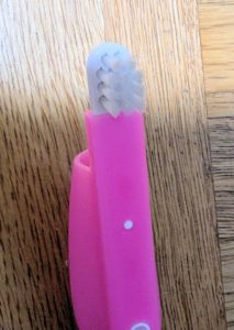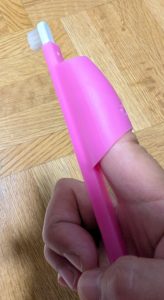 指サックのように人差し指を入れて、曲がってくれます。なので歯に毛先が当たりやすくなります!